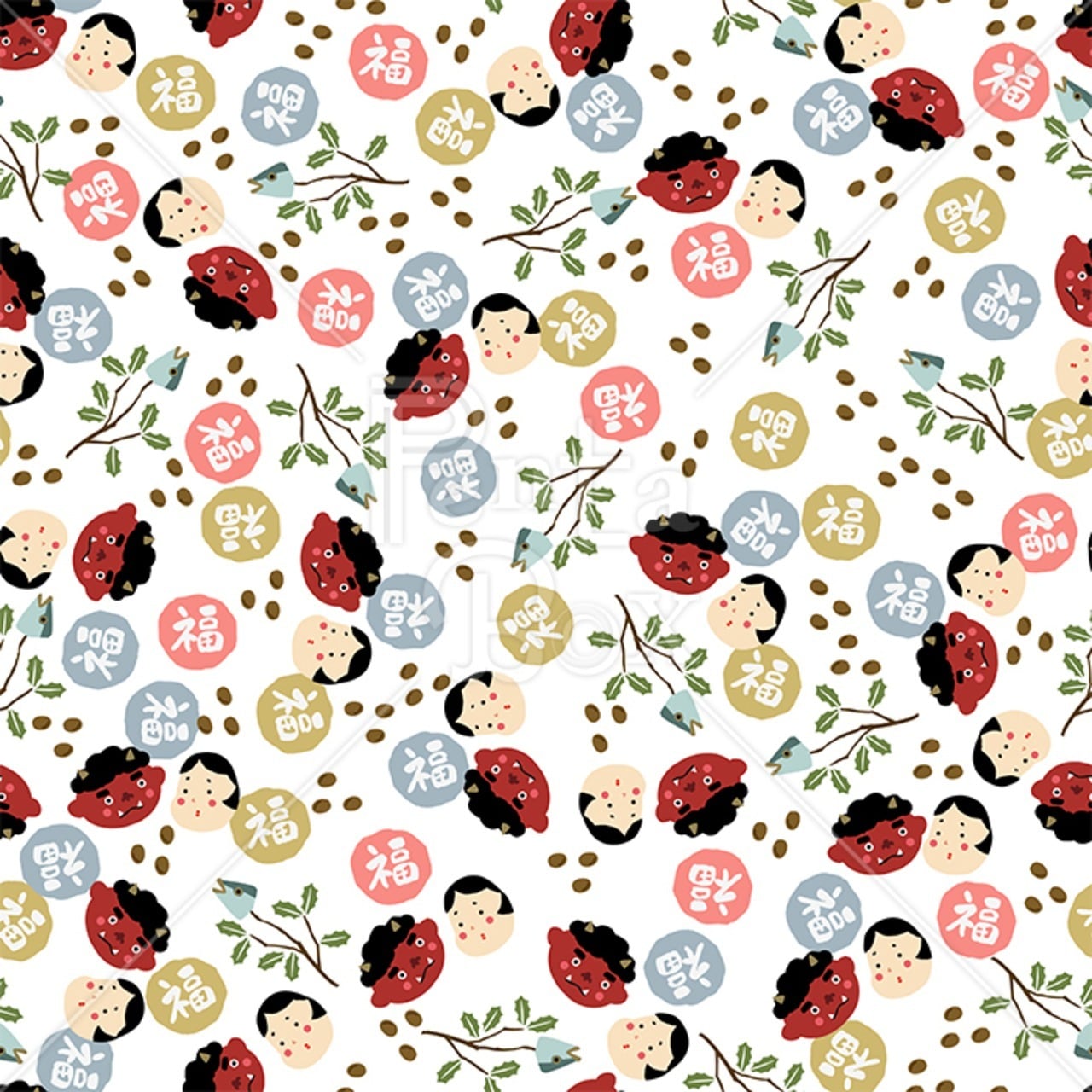 節分の鬼と丸福が描かれた和風なシームレスなパターン。背景の他にもテキスタイルや包装紙におすすめです。 ホワイト、グリーン、マスタードの3色セット。 それぞれAI形式、EPS形式、JPEG形式のファイルを収録しています。 ---------------------------------------- 【商品情報】 ●ファイル形式:AI形式 EPS形式 JPEG形式 ●収録点数:9点 ●商用利用可 ---------------------------------------- ※データは圧縮しておりますので解凍してご利用下さい。